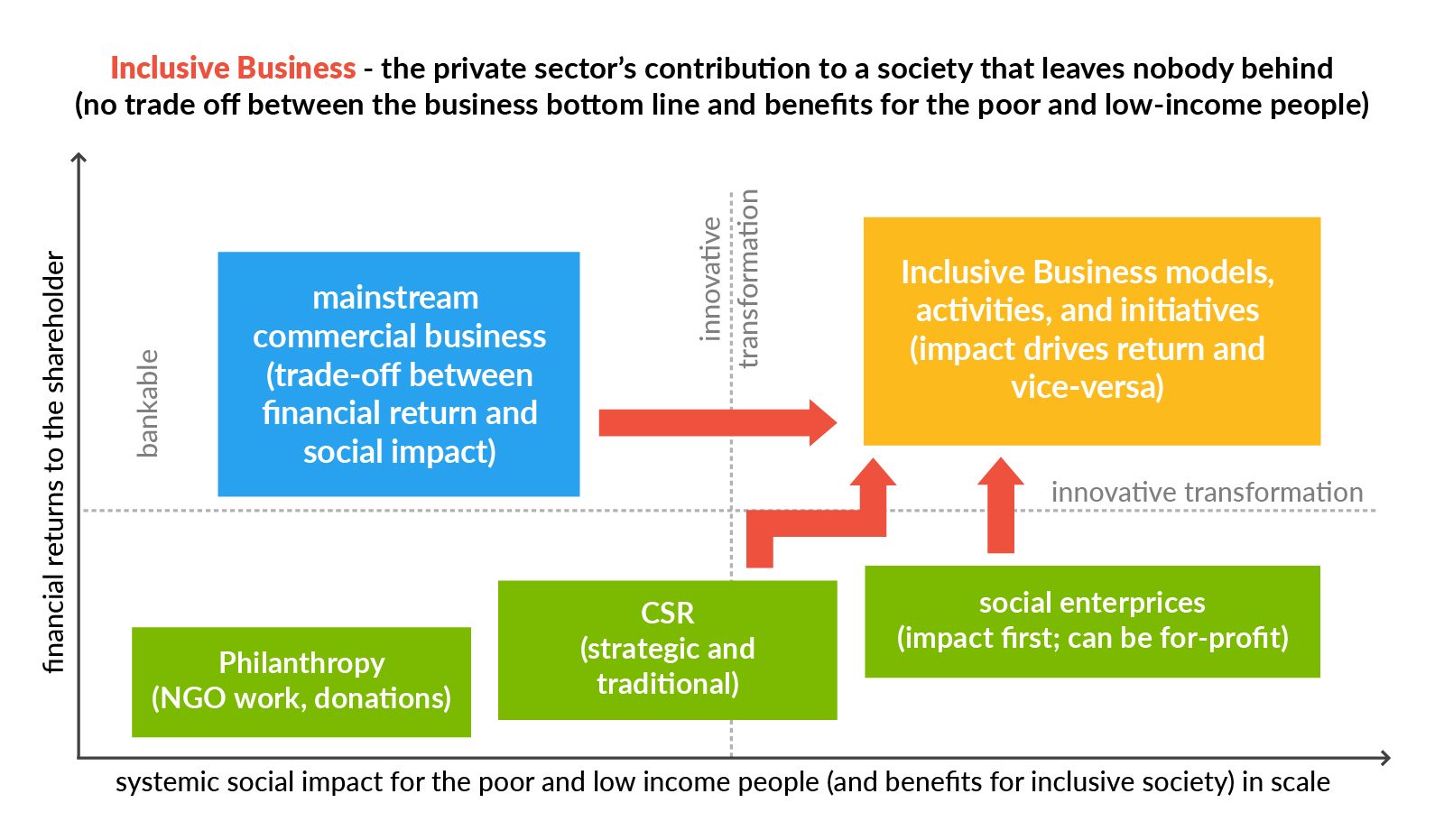 IB solutions have high social value for society. They create triple wins for the poor, for the private sector and for the public. Governments are therefore increasingly interested in promoting such companies by establishing special incentives or by targeting their industrial policies towards such companies. Promoting a better enabling IB environment also encourages structural transformation towards higher commercial return and a wider and deeper impact on BoP people. In 2020 the 10 ASEAN countries therefore endorsed a specific IB policy guide[2]. Various countries in the region and in Africa have embarked on specific IB promotion strategies and programs.